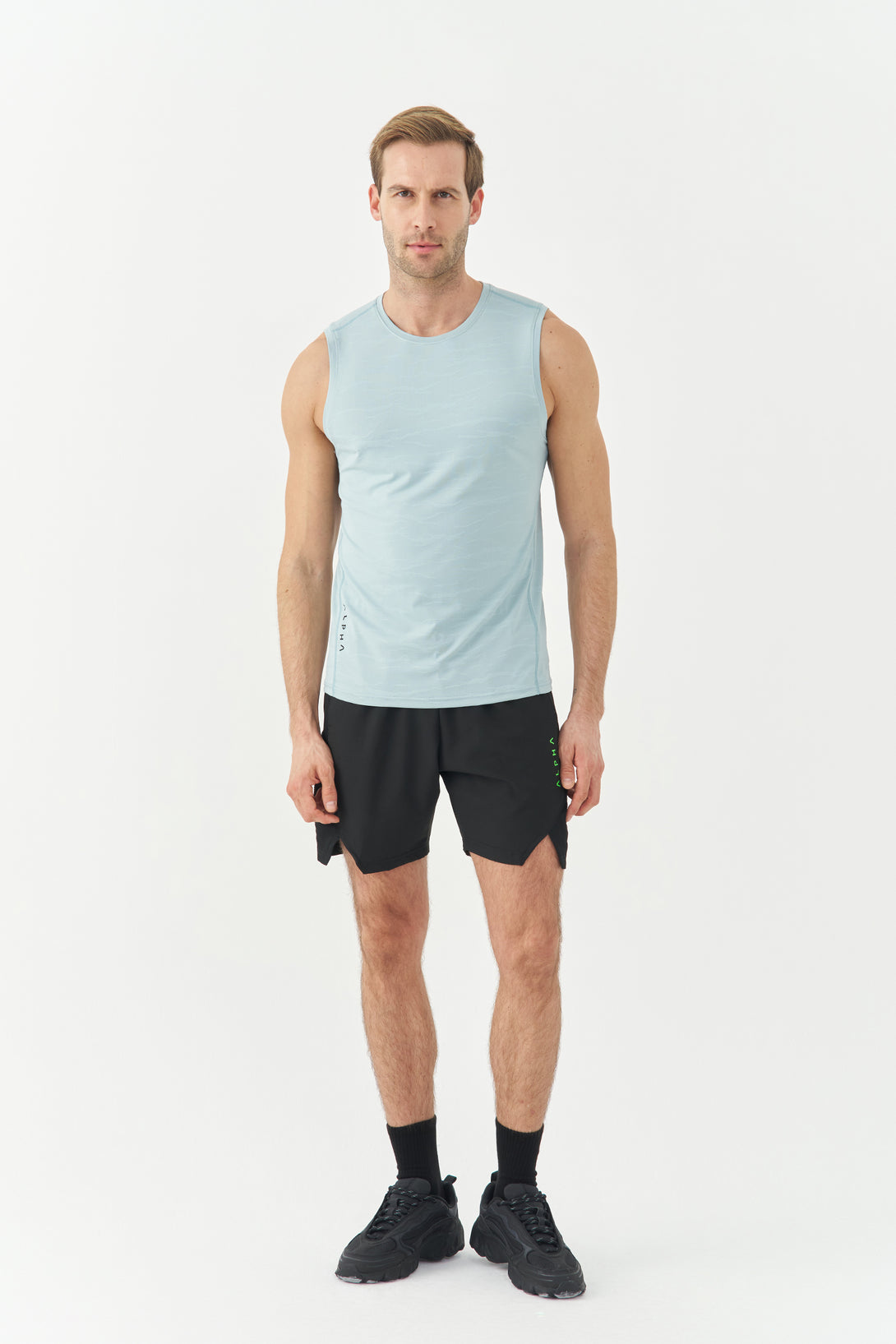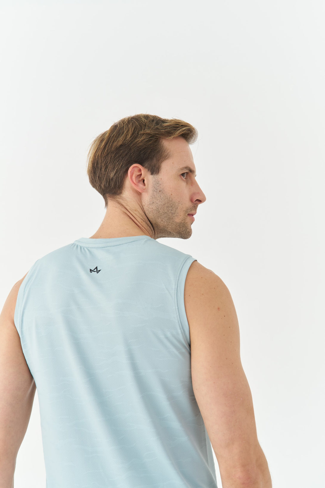 Stay cool and move freely in the Sky Blue Textured Tank-Shirt. Designed with breathable textured fabric, it ensures unrestricted mobility and a fresh feel during workouts or casual wear.