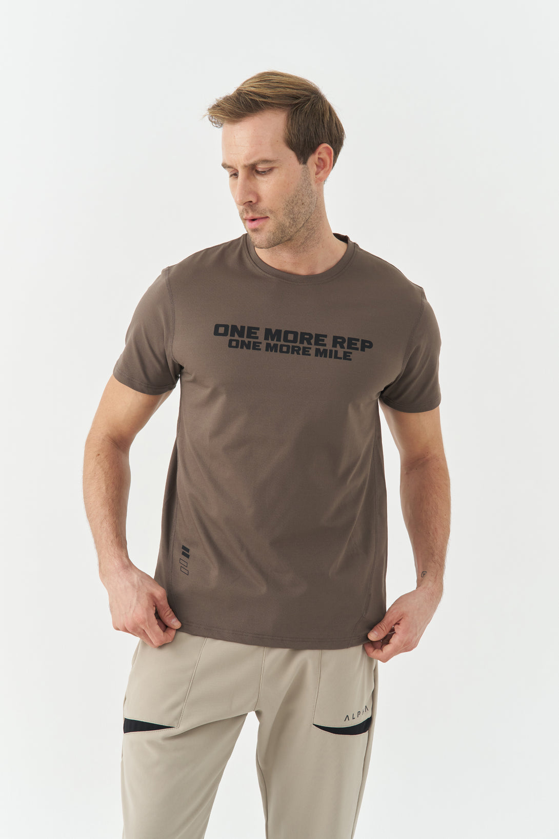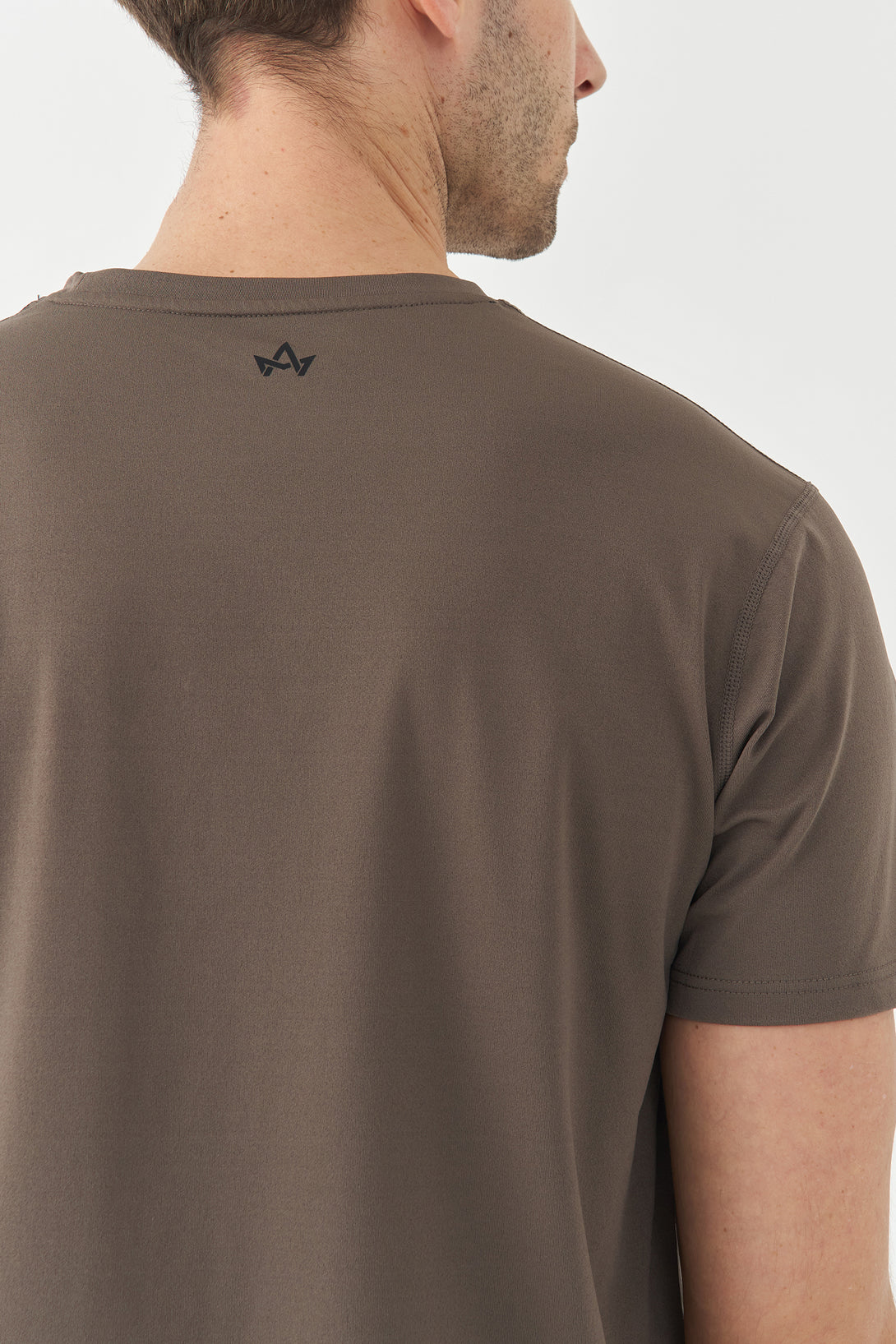 The Mocca Brown Graphic Statement Dry-Fit T-Shirt merges earthy tones with advanced performance design. Built to move with you, wherever your day takes you.