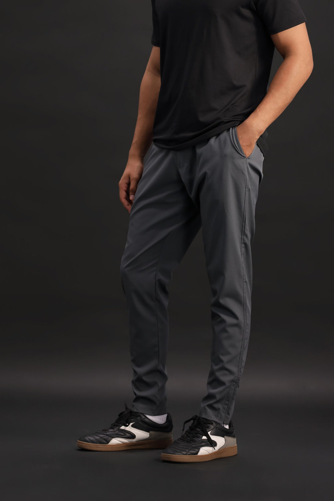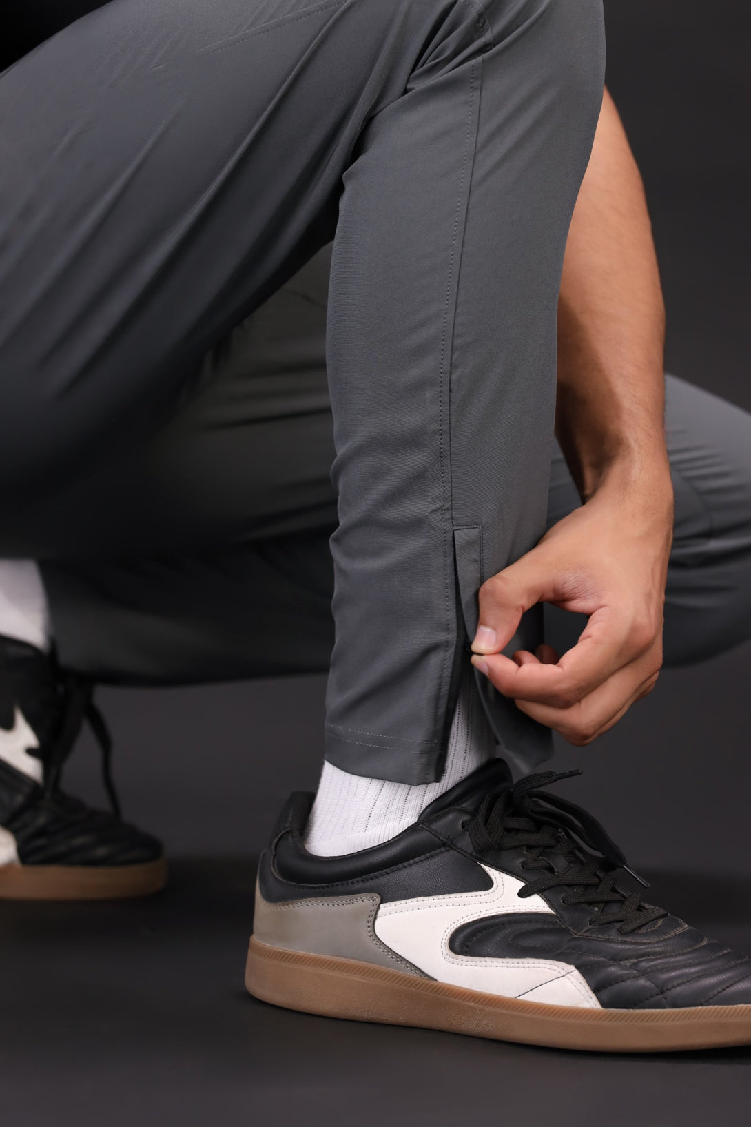 Built for precision movement, these dark grey trousers blend style and sport. Features include zippered side pockets and zippered hems—ideal for warm-ups, cool-downs, or transitions between workouts.