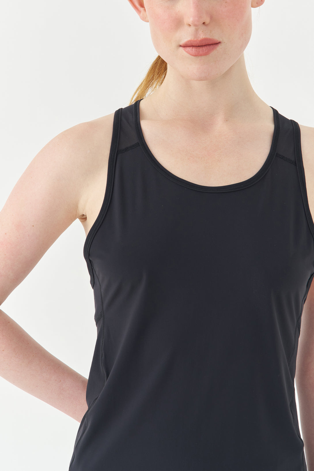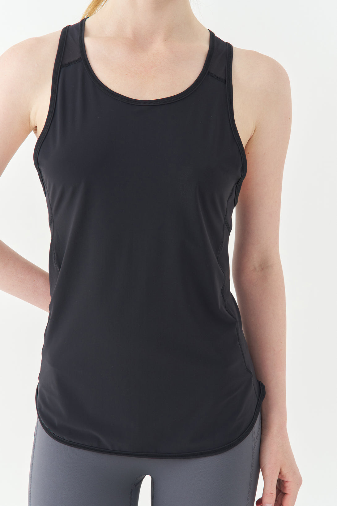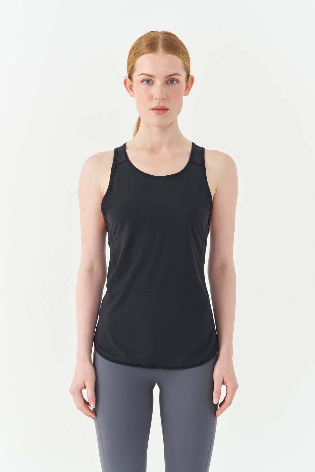 Streamlined and supportive, the Black Aero-Fit Tank Top uses an 80% nylon and 20% spandex blend for a sculpted feel. With integrated padding and a built-in bra, it offers secure hold and elevated comfort during active routines.
