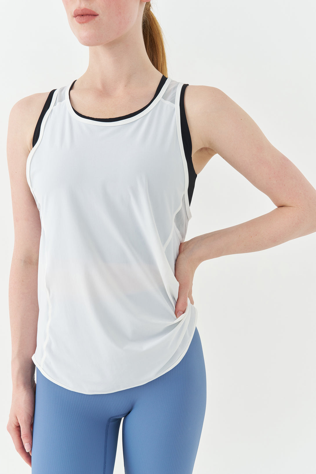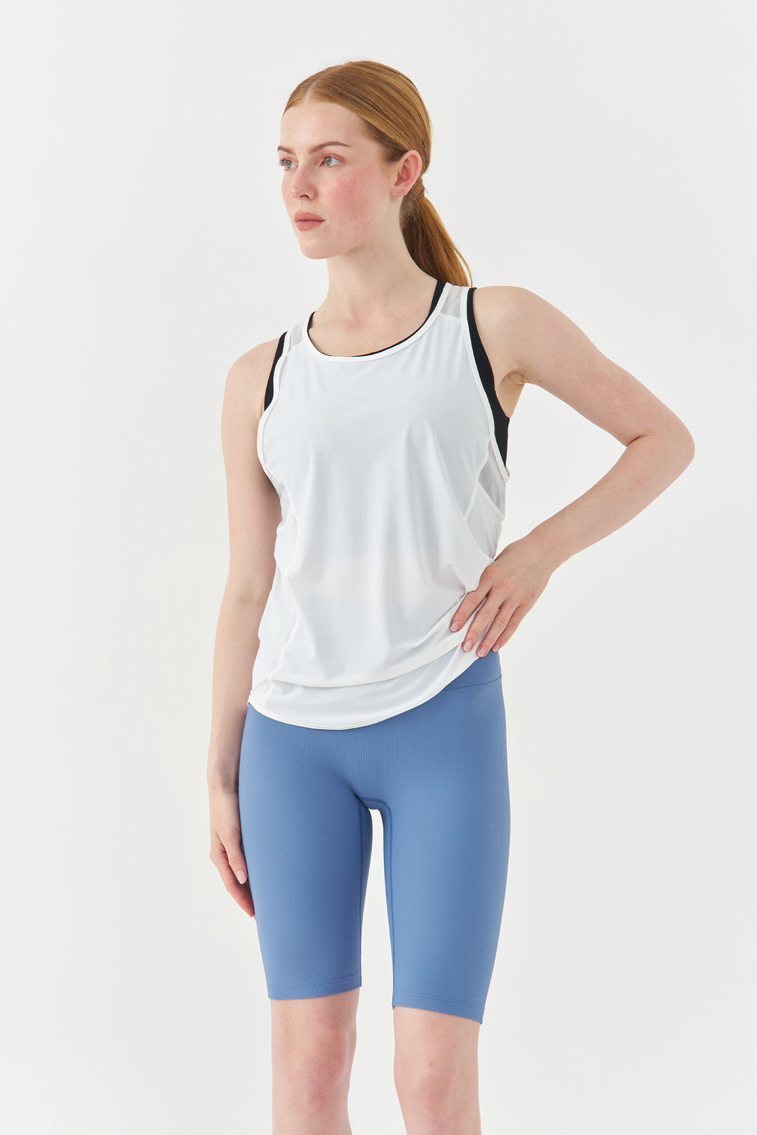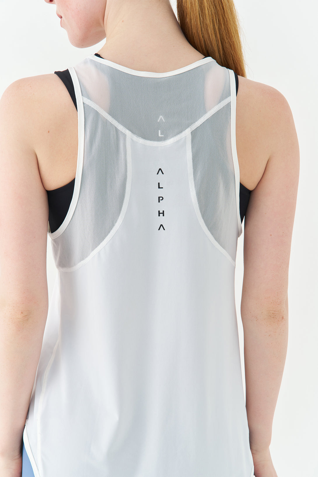 Bright, clean, and sculpted — the White Aero-Fit Tank Top uses an 80% nylon and 20% spandex fabric to deliver supportive stretch with a refined athletic silhouette. The built-in bra and padding offer comfort without additional layers.