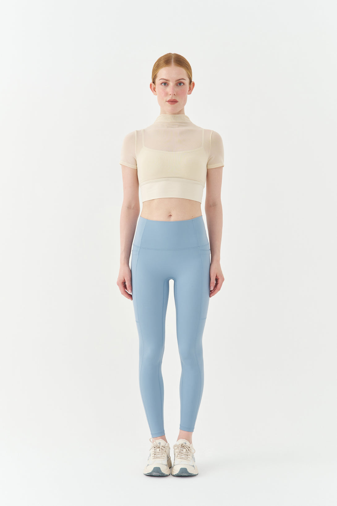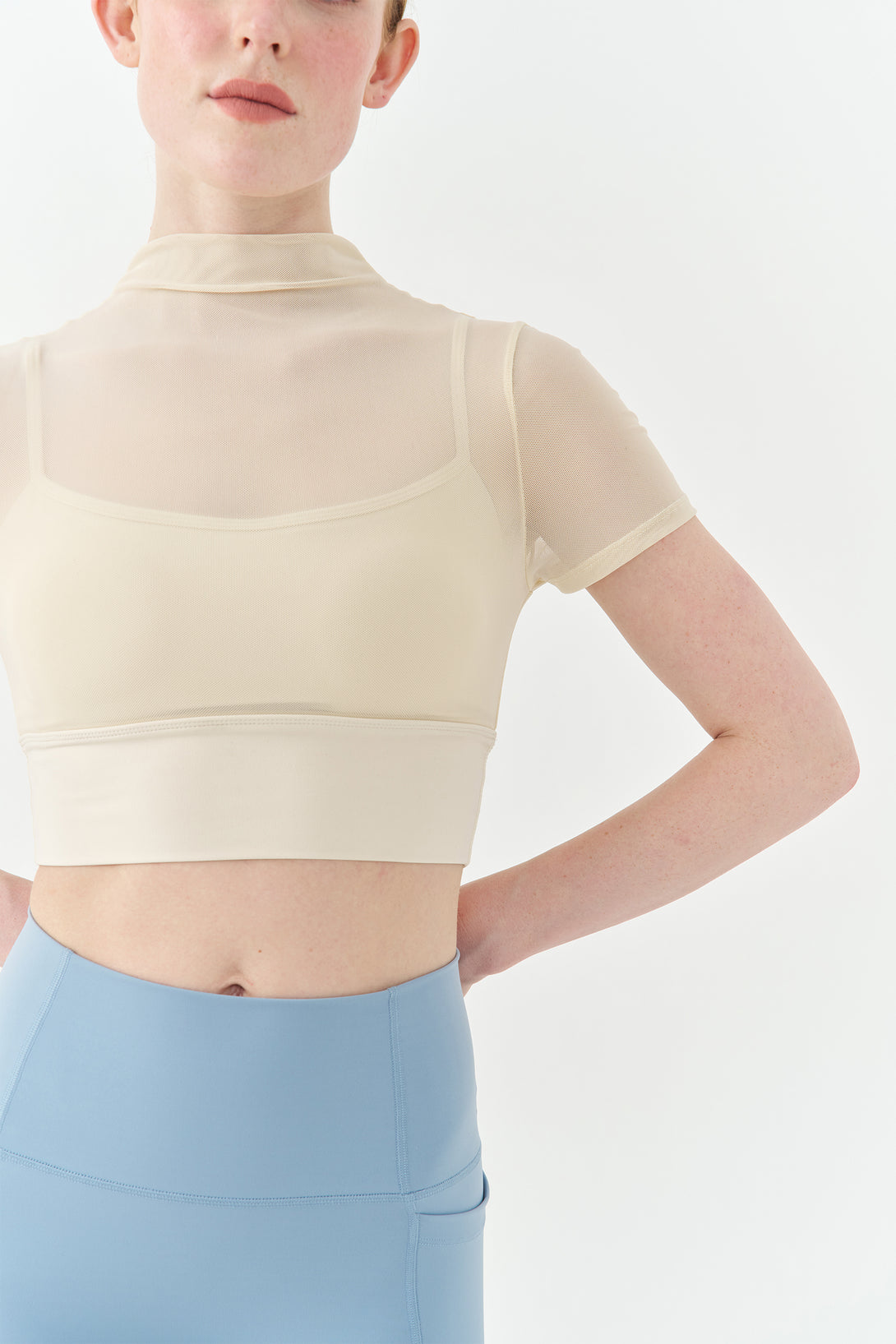 - Sheer mesh detailing for breathable elegance