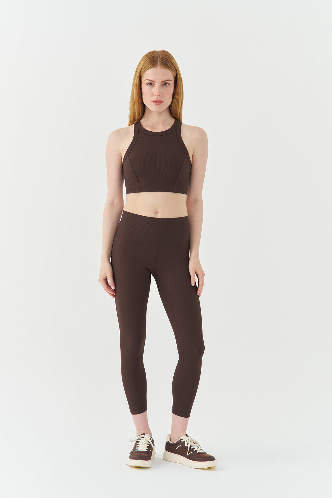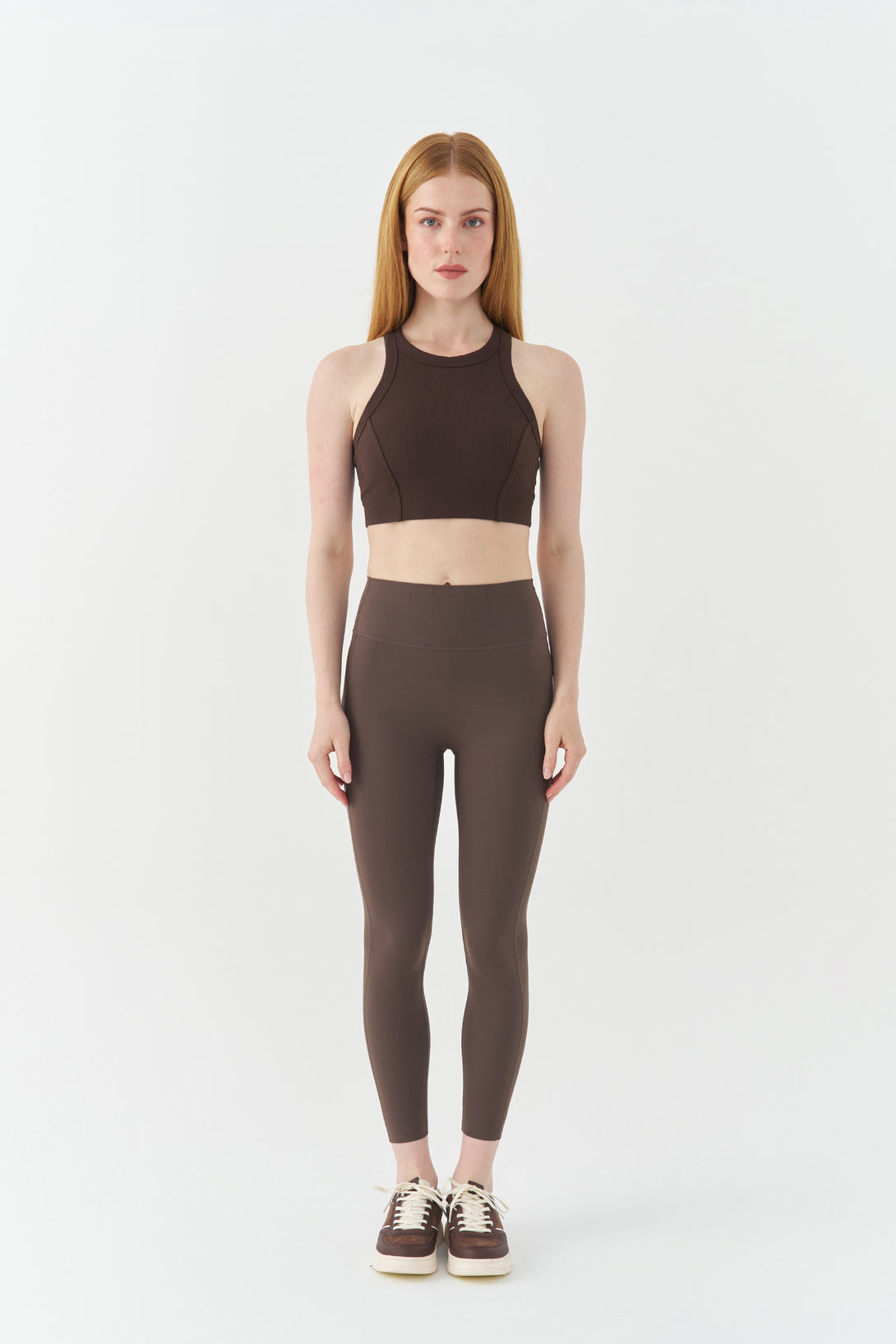 Supportive, flexible, and stylish — the Brown Textured Core Tights provide a sculpted fit with subtle texture for modern appeal. Perfect for training, yoga, or athleisure, they combine comfort and performance seamlessly.