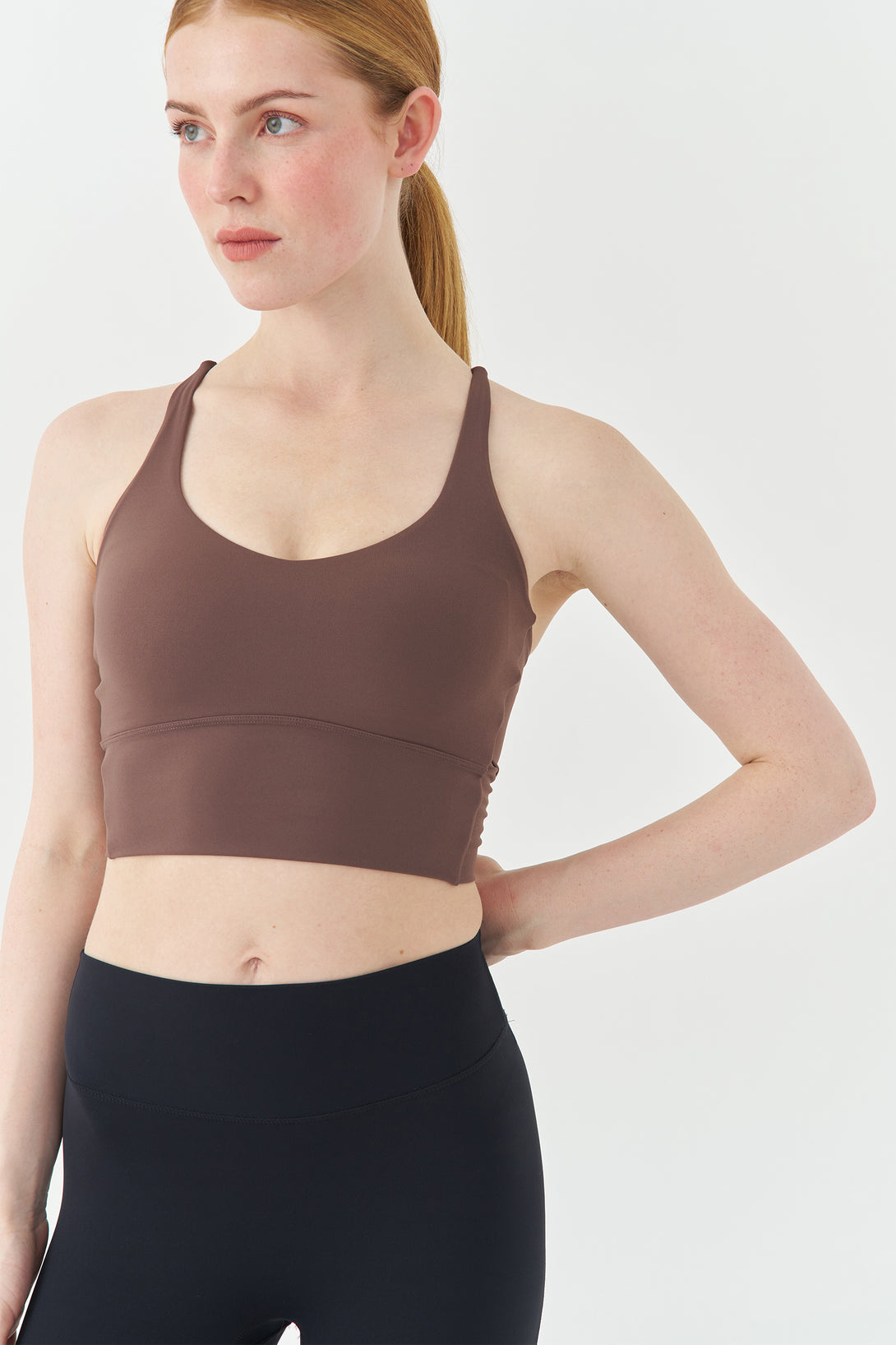 Rich-toned and supportive, the Mocca Nova Fit Sports Bra brings padded comfort with a sculpted, flattering fit. Its warm mocca shade adds a premium, earthy touch to your activewear rotation.
